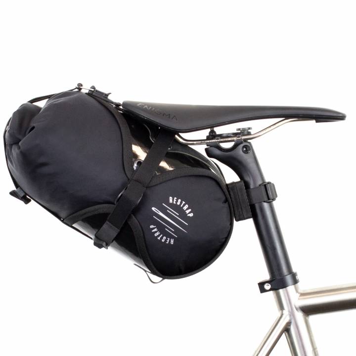 Right off the bat, we like the fact that 18 months of testing went into Restrap’s new Adventure Race collection. The Adventure Race saddle bag ($150) looks especially cool, with a high-tech laser cut design, waterproofing, and a magnetic buckle. The bag holster has a hard shell and comes with Hypalon loops to integrate a light. And the drybag itself holds a handy 7 L of gear and has reflective detailing. The price, $150, seems a little steep, but there’s a lot included.