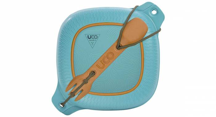 This is the perfect gift for campers, backpackers, or anyone who regularly eats on the go. It comes with a plate, bowl, 3-in-1 spork, and tether to secure it all together.